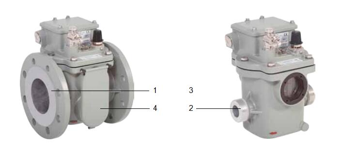 殼體是由耐氣候變化的鑄鋁合金制成,表層已涂色. 依照結構設計形式可分為法蘭盤(圖3中1)連接或螺紋連接(圖3中2). 對殼體的變型品種選項將在下文第5點(單浮子瓦斯繼電器)和第7點( 雙浮子瓦斯繼電器)中加以說明. 其他選項歡迎垂詢.